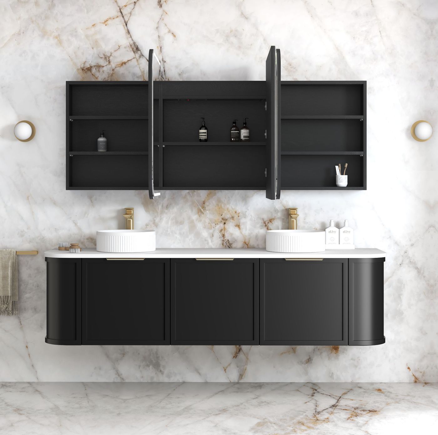 | NEWPORT 1800mm SHAVING CABINET BLACK OAK |