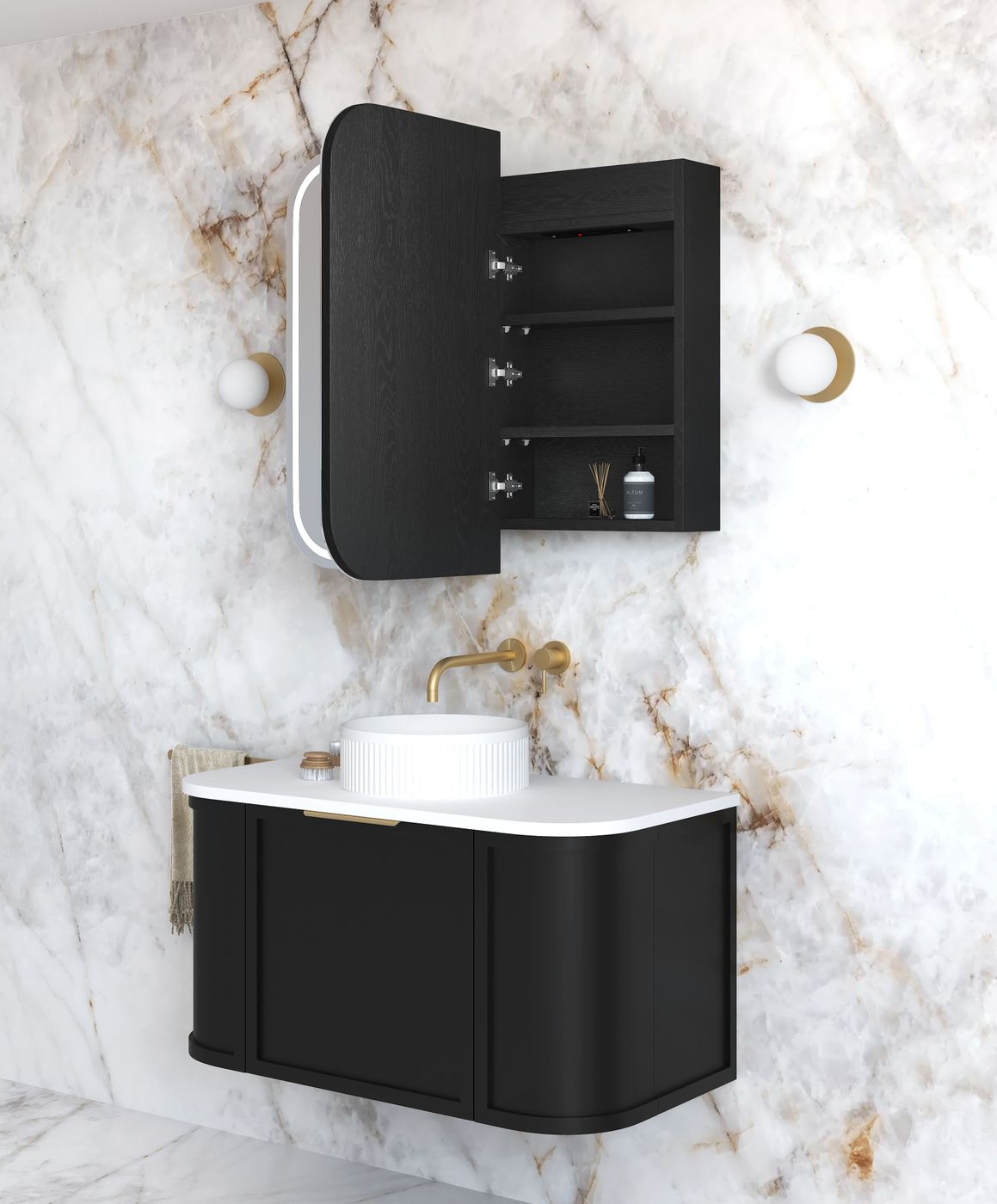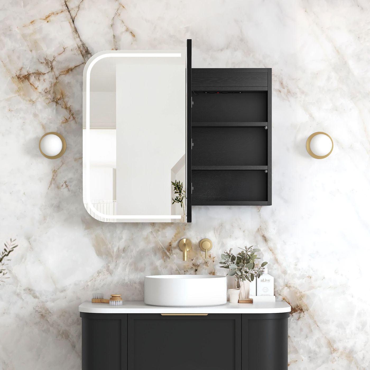 NEWPORT 900mm LED SHAVING CABINET BLACK OAK